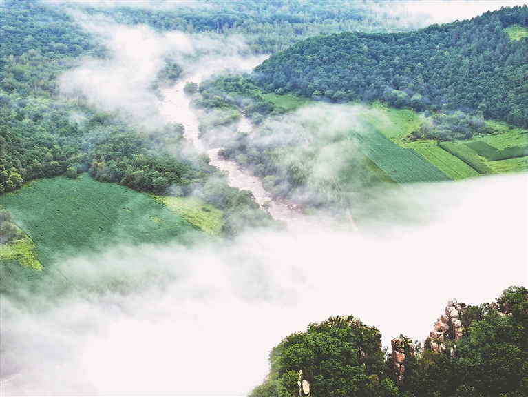 晨霧繚繞的山峰。單忠宇攝