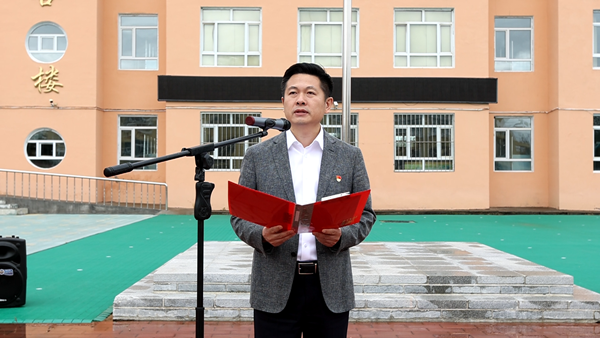 在國(guó)旗下,漠河市邊境檢查站代表陳澤和“全區(qū)十佳駐村干部”王成龍用自己生動(dòng)的故事為在場(chǎng)的每位少先隊(duì)員們上了一堂生動(dòng)的國(guó)防教育課,漠河市的少先隊(duì)員代表王涵在國(guó)旗下表達(dá)了對(duì)祖國(guó)的熱愛和對(duì)戍邊工作者們的敬佩。團(tuán)省委副書記陳海萍在講話中鼓勵(lì)少先隊(duì)員要學(xué)習(xí)漠河戍邊工作者們的堅(jiān)韌不拔和無私奉獻(xiàn),要立足祖國(guó)最北方志存高遠(yuǎn)、勤奮學(xué)習(xí)、錘煉品德、強(qiáng)健體魄,敢于創(chuàng)新、富于創(chuàng)意、樂于創(chuàng)造,要沿著“入隊(duì)、入團(tuán)、入黨”的“人生三部曲”奮力前進(jìn),為推進(jìn)中國(guó)式現(xiàn)代化、實(shí)現(xiàn)強(qiáng)國(guó)復(fù)興偉業(yè)貢獻(xiàn)青春力量。