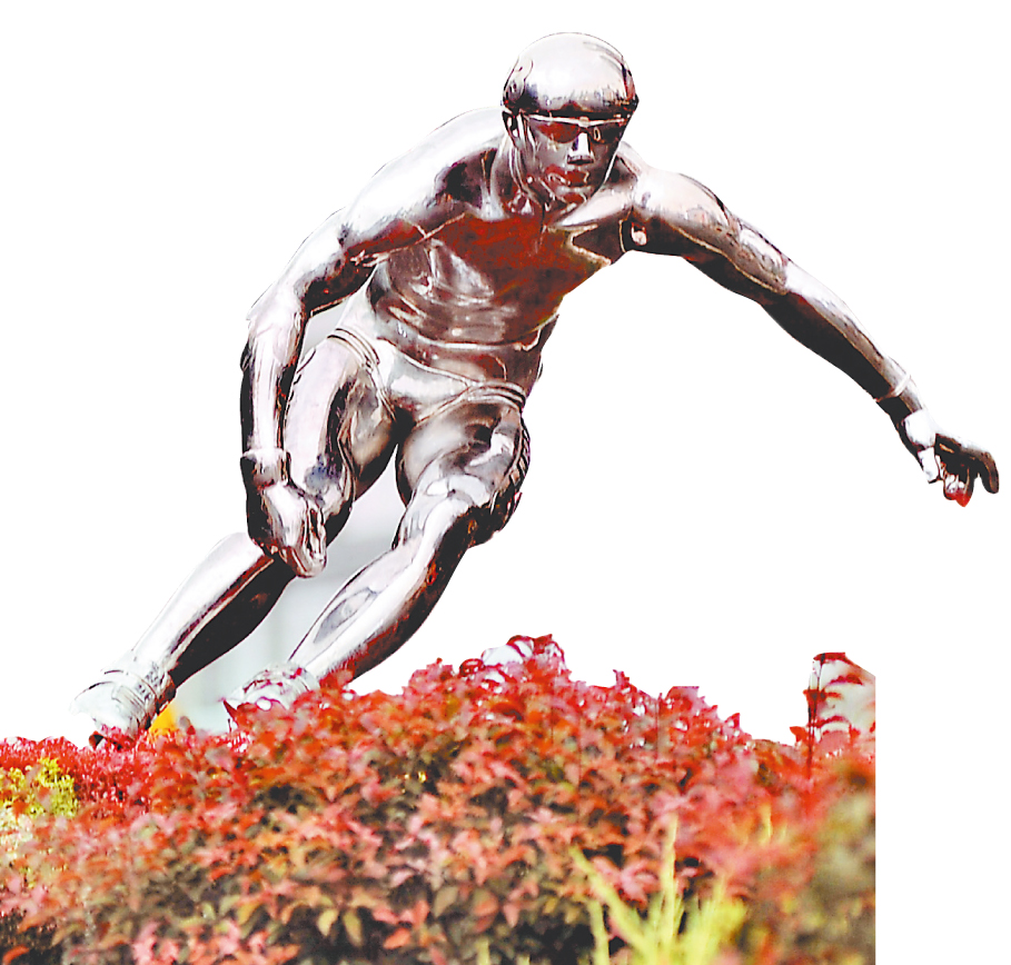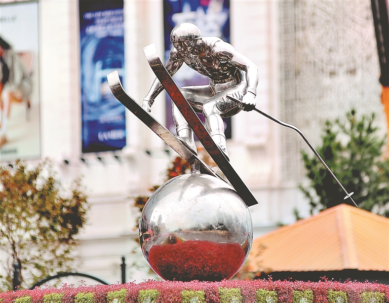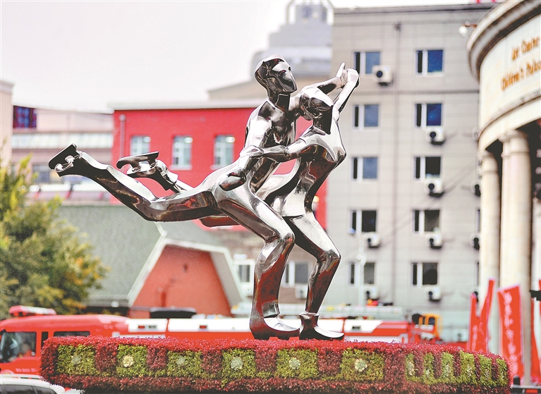 9日,在哈爾濱市南崗區(qū)紅軍街上,一處綠地里以亞冬會冰雪比賽項目為主題的雕塑群吸引了行人的目光。這些雕塑外觀銀色、制作精美、栩栩如生,展現(xiàn)了運動員奮力拼搏、勇往直前的精神風(fēng)貌。
