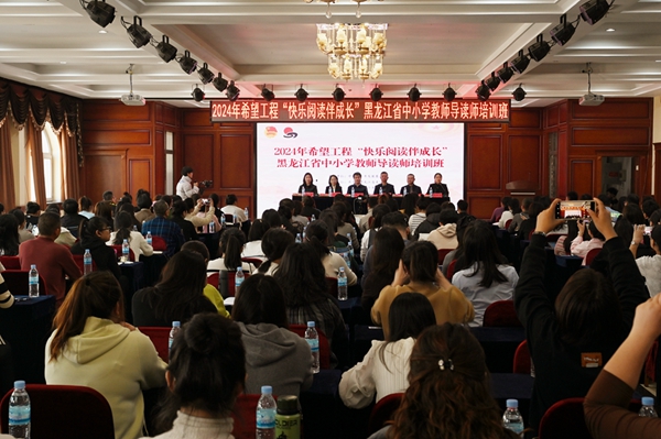 儀式最后,共青團黑龍江省員會副書委記張濤在講話中強調:“從小養(yǎng)成良好的閱讀習慣對青少年健康成長至關重要,‘希望工程快樂閱讀伴成長’項目,就是將閱讀教育與希望工程緊密結合,在強化青少年思想政治引領的基礎上,為孩子們提供更多的閱讀資源和更好的閱讀環(huán)境,幫助孩子們獲取知識儲備、積蓄發(fā)展力量。希望省青基會以此培訓為契機,繼續(xù)加強新時代希望工程品牌建設,加強與市地、縣區(qū)團委等相關部門的協(xié)同合作,不斷強化希望工程的影響力、服務力、引領力,幫助更多龍江青少年實現(xiàn)全面健康發(fā)展。希望各位老師珍惜此次難得的學習機會,全身心投入到培訓課程中。與專家深入交流,與伙伴分享經驗,將所學所思積極轉化為實際教學中的有效舉措,以更加飽滿的熱情與專業(yè)的素養(yǎng),為鄉(xiāng)村孩子們打造豐富多彩的閱讀環(huán)境,精心設計閱讀活動,引導他們在閱讀中探索、在閱讀中感悟、在閱讀中成長。”