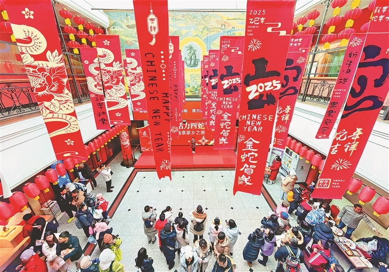 1月29日,大年初一,哈爾濱太陽島雪博會園區(qū),游人如織。孩子們在家長的帶領下,坐雪圈、騎冰上自行車,玩冰戲雪,歡樂融融。省博物館展廳內,懸掛了紅燈籠、紅條幅,許多市民、游客在參觀學習,打卡拍照,體驗傳統(tǒng)民俗。