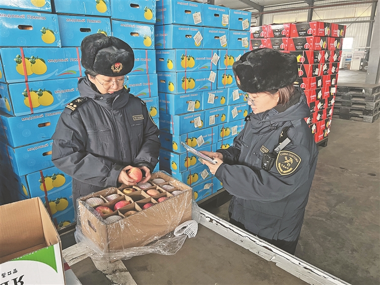 海關(guān)監(jiān)管。圖片由黑河海關(guān)提供