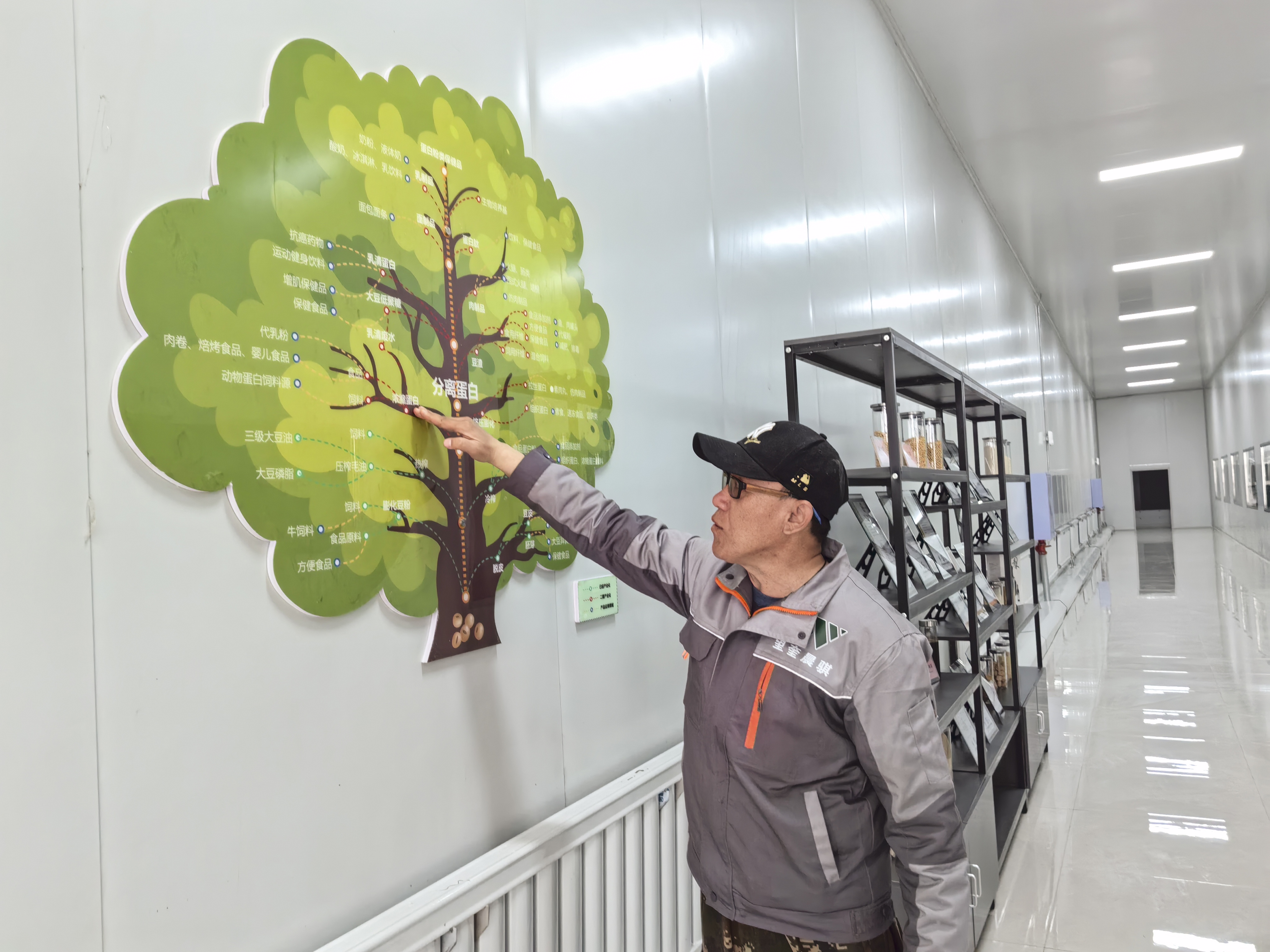 在成品車間,記者看到一張“樹狀圖”,清晰展示著大豆深加工的產(chǎn)業(yè)圖譜,藍(lán)色圓圈代表產(chǎn)品應(yīng)用領(lǐng)域,綠色圓圈代表已經(jīng)實(shí)現(xiàn)產(chǎn)業(yè)化的領(lǐng)域,紅色圓圈則代表二期即將上馬的加工項(xiàng)目。從“樹狀圖”上,可見晨騏農(nóng)業(yè)強(qiáng)勁發(fā)展的勢頭。