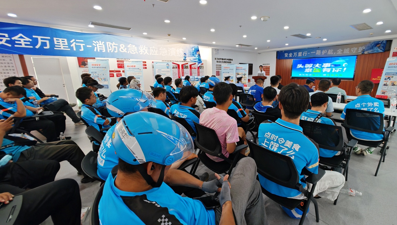 騎手既是安全出行的參與者,也是城市生活的守護(hù)者。當(dāng)天,北京市公安局公安交通管理局朝陽(yáng)交通支隊(duì)、北京市朝陽(yáng)區(qū)消防救援支隊(duì)舉行了安全知識(shí)講座,餓了么還為騎手進(jìn)行了應(yīng)急救援培訓(xùn)。