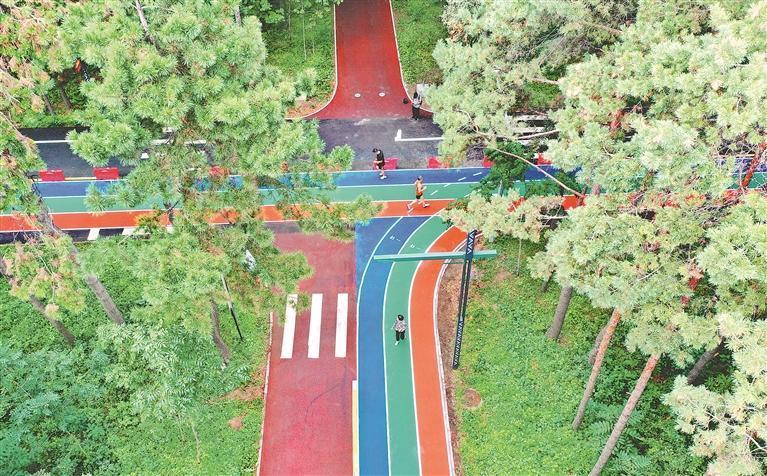 一位在這里跑步的附近居民說,林間空氣清新,負(fù)氧離子含量高,對人體有很大益處。一邊跑步健身,一邊觀賞林間美景,感覺舒服又愜意。