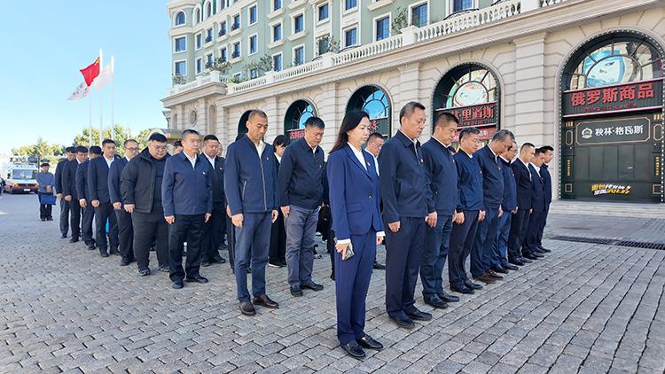 9時(shí),警報(bào)聲劃破長空,全體人員莊嚴(yán)肅立,向在抗日戰(zhàn)爭中英勇犧牲的先烈們默哀,表達(dá)深切緬懷和崇高敬意。