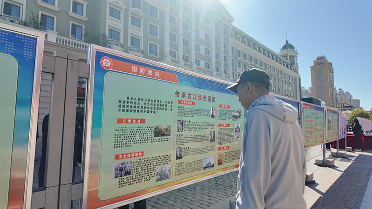 警報(bào)鳴響結(jié)束后,黑龍江省國動辦組織開展了豐富的國防教育宣傳工作。主會場設(shè)置了32塊宣傳展板,圖文并茂,生動展示了中國人民艱苦卓絕的抗戰(zhàn)歷程,以及世界反法西斯戰(zhàn)爭勝利的輝煌時(shí)刻,全面介紹了國防動員的重大意義、人民防空基本知識以及黑龍江省在國防動員建設(shè)方面取得的顯著成就,吸引了眾多市民駐足觀看。