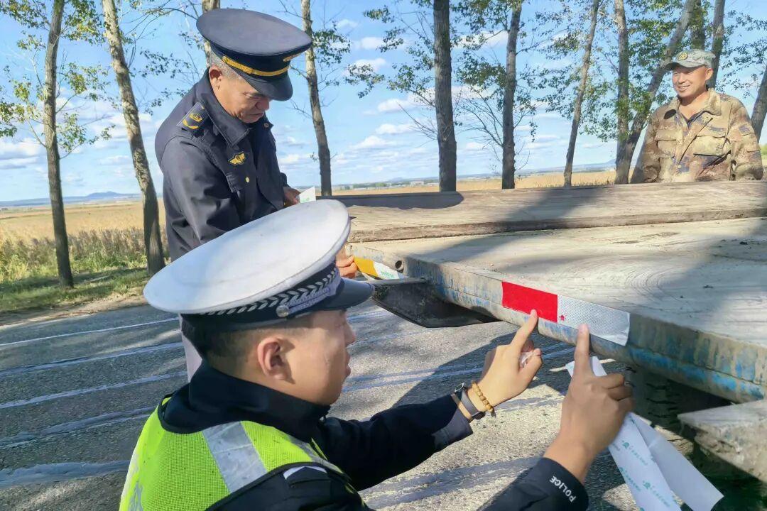 行動(dòng)中,“警農(nóng)”聯(lián)合執(zhí)法小組結(jié)合轄區(qū)秋收農(nóng)機(jī)出行規(guī)律,在農(nóng)村主干道、田間出入口等路段設(shè)置臨時(shí)檢查點(diǎn),按照“逢車必查、違法必究”的原則,對(duì)過(guò)往拖拉機(jī)、農(nóng)用車進(jìn)行逐一檢查,嚴(yán)厲打擊無(wú)牌無(wú)證、酒駕醉駕、違法載人等交通違法行為,形成嚴(yán)查、嚴(yán)管、嚴(yán)處的高壓態(tài)勢(shì),從源頭上預(yù)防和減少交通事故。同時(shí),針對(duì)秋收期間農(nóng)用車、農(nóng)機(jī)具夜間作業(yè)頻繁,反光標(biāo)識(shí)缺失易引發(fā)事故的問(wèn)題,持續(xù)深化“亮尾”行動(dòng),對(duì)上路行駛的農(nóng)用車、大型農(nóng)機(jī)具等車身無(wú)反光標(biāo)識(shí)、反光標(biāo)識(shí)不清晰不完整的車輛現(xiàn)場(chǎng)免費(fèi)粘貼反光貼,確保車身側(cè)面、尾部關(guān)鍵部位反光標(biāo)識(shí)清晰可見(jiàn),提升夜間行駛辨識(shí)度;并向群眾面對(duì)面講解農(nóng)用車違法載人、無(wú)牌無(wú)證、駕駛報(bào)廢車輛上路行駛等交通違法行為的危害性,切實(shí)提升安全出行意識(shí)和自我保護(hù)意識(shí),引導(dǎo)群眾自覺(jué)遵守交通法規(guī),養(yǎng)成安全作業(yè)習(xí)慣。