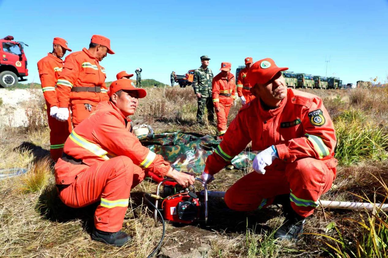 阿木爾林業(yè)局“以水滅火”中隊(duì)模擬實(shí)戰(zhàn)演練撲滅火點(diǎn)(王力 攝)
