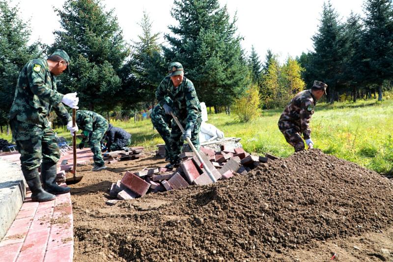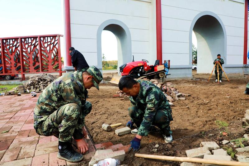阿木爾林業(yè)局專業(yè)撲火隊員正在維修改造北極植物園附屬基礎(chǔ)設(shè)施(王力 攝)