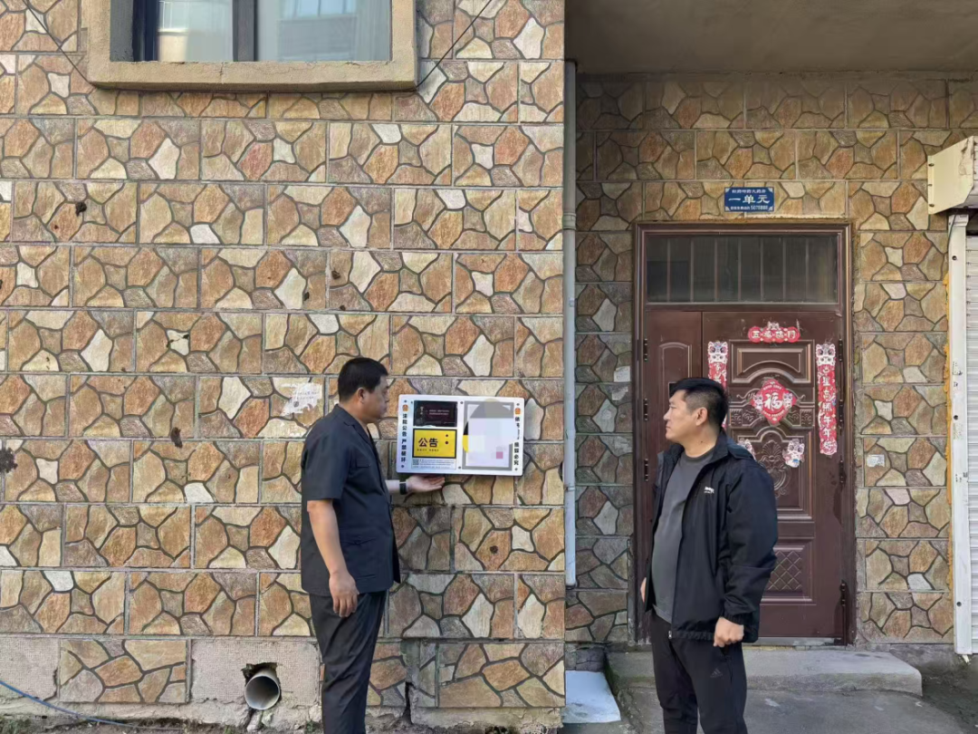 海倫市人民法院在執(zhí)行某銀行與趙某借款合同糾紛一案中張貼拍賣房屋公告(鄧育彤 攝)