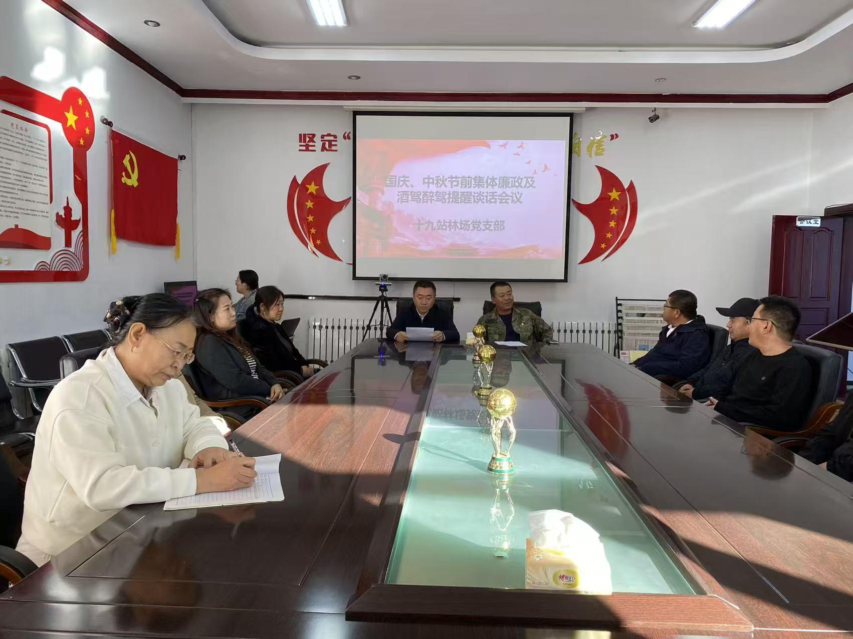 黑龍江經(jīng)濟(jì)網(wǎng)訊(王秀萍)國慶、中秋將至,為鞏固拓展深入貫徹中央八項(xiàng)規(guī)定精神學(xué)習(xí)教育成果,進(jìn)一步增強(qiáng)黨員干部廉潔自律意識(shí)和拒腐防變能力,確保節(jié)儉文明廉潔過節(jié),9月29日,十八站林業(yè)局十九站林場(chǎng)黨支部召開國慶、中秋節(jié)前集體廉政提醒談話會(huì)議,并對(duì)林場(chǎng)國慶假期安全生產(chǎn)工作進(jìn)行部署。