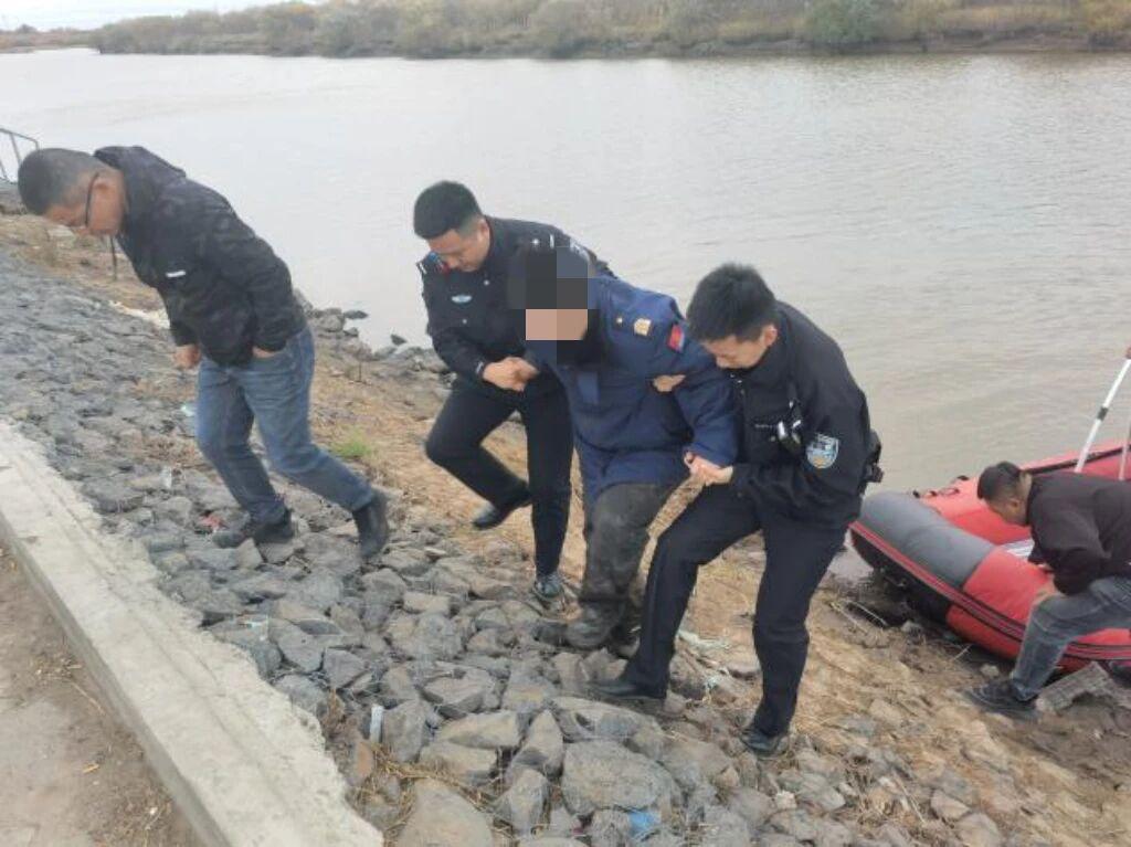 10月8日4時50分,五大連池市公安局勤儉派出所接到情報指揮中心派警:一名熱心群眾報警稱,在訥謨爾大橋附近聽到有人呼救,疑似有人落水。接警后,勤儉派出所民輔警迅速抵達(dá)現(xiàn)場,此時天色昏暗、視野受限,大橋上車流穿梭,民輔警在車流中來回奔走循聲搜尋,最終憑借微弱的呼救聲鎖定落水者位置——訥謨爾大橋下的橋墩處。