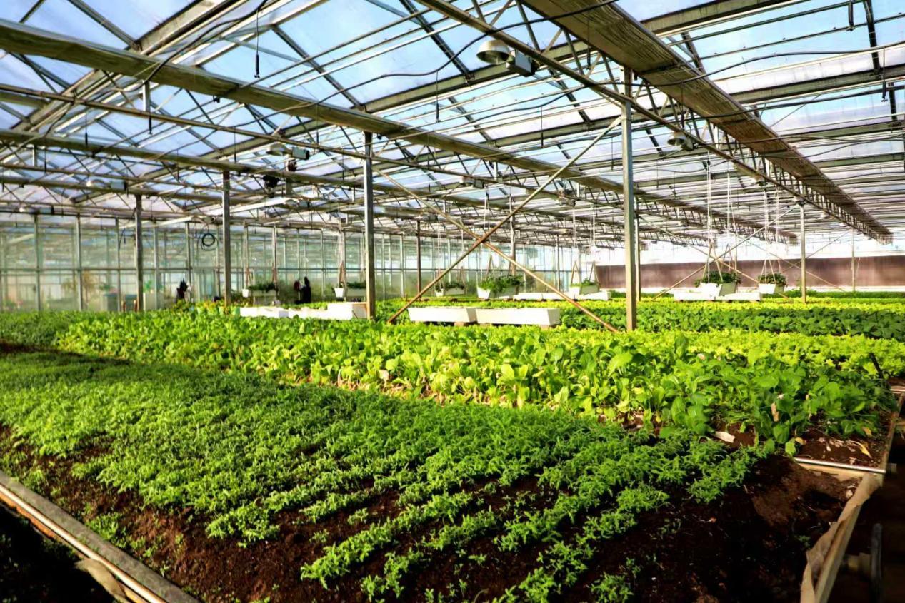 阿木爾林業(yè)局中心苗圃利用藍莓園智能連棟溫室種植的反季節(jié)蔬菜(王力 攝)