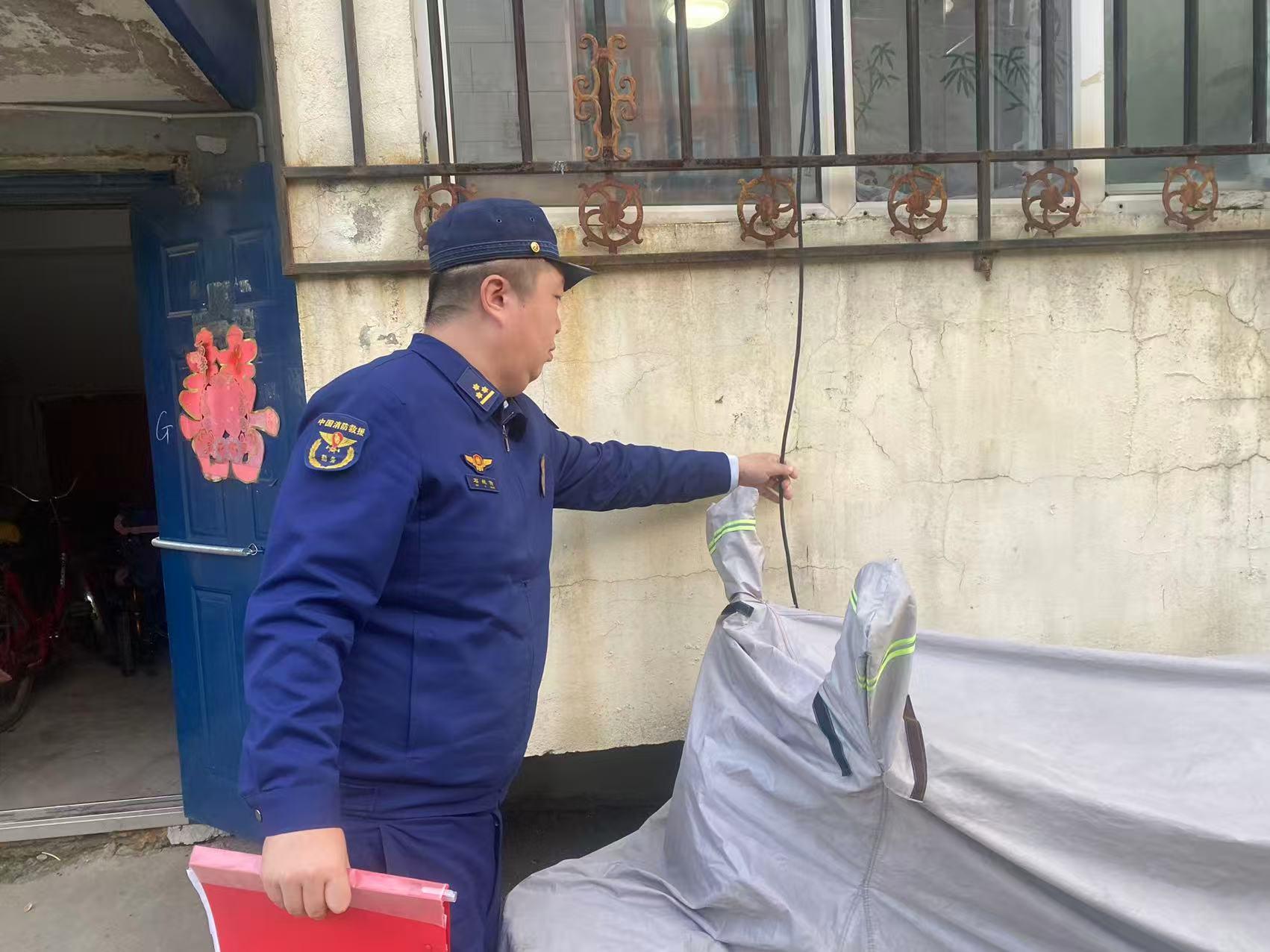 塔河縣消防救援大隊(duì)執(zhí)法人員深入居民樓區(qū)開展電動(dòng)車飛線充電隱患排除活動(dòng)(孫珍珍 攝)