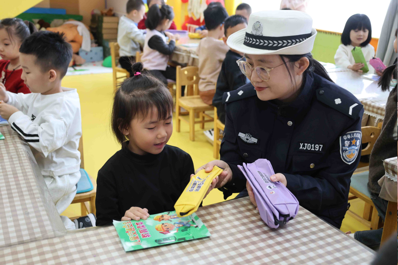 活動中,民警結(jié)合幼兒認(rèn)知特點(diǎn),將枯燥的交通法規(guī)轉(zhuǎn)化為生動有趣的互動形式,通過發(fā)放安全宣傳圖冊、粘貼海報(bào)、播放交通安全卡通動畫等寓教于樂的形式,用通俗易懂的語言向孩子們普及信號燈通行規(guī)則、過馬路走斑馬線及冬季出行安全知識和注意事項(xiàng),進(jìn)一步提升師生的安全出行意識和守法意識。同時(shí),持續(xù)強(qiáng)化“小手拉大手”示范引領(lǐng)作用,積極鼓勵孩子們當(dāng)起家庭“交通安全監(jiān)督員”,將活動中學(xué)到的交通安全知識傳遞給父母,提醒家長冬季出行要做到不酒駕、不超速、乘車系好安全帶等出行注意事項(xiàng),時(shí)刻督促家人養(yǎng)成良好出行習(xí)慣。