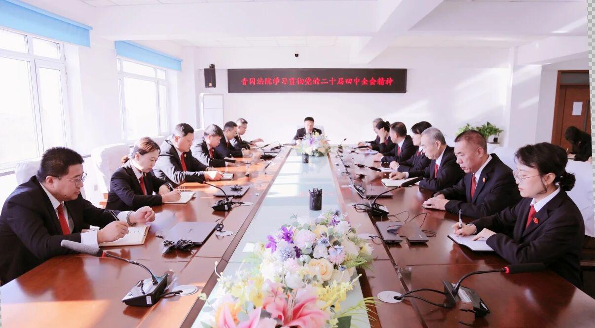 會議強(qiáng)調(diào),要錨定政治引領(lǐng),在鑄牢忠誠之魂上抓落實(shí)。要深化理論武裝、強(qiáng)化政治忠誠、壓實(shí)政治責(zé)任。黨組成員要帶頭把學(xué)習(xí)貫徹全會精神作為當(dāng)前和今后一個時期的重大政治任務(wù),建立黨組領(lǐng)學(xué)、支部研學(xué)、干警自學(xué)的三級學(xué)習(xí)機(jī)制。通過專題研討、輔導(dǎo)講座、案例教學(xué)等形式,深入學(xué)習(xí)習(xí)近平總書記重要講話精神和全會規(guī)劃建議原文,準(zhǔn)確領(lǐng)會“六個堅(jiān)持”重要原則,深刻領(lǐng)悟“兩個確立”的決定性意義,增強(qiáng)“四個意識”、堅(jiān)定“四個自信”、做到“兩個維護(hù)”。要聚焦中心大局,在精準(zhǔn)服務(wù)保障上抓落實(shí)。要護(hù)航高質(zhì)量發(fā)展、保障科技自立自強(qiáng)、守護(hù)生態(tài)環(huán)境安全、筑牢國家安全屏障。完整、準(zhǔn)確、全面貫徹新發(fā)展理念,依法審理涉市場經(jīng)濟(jì)案件,著力破除阻礙統(tǒng)一大市場卡點(diǎn)堵點(diǎn),維護(hù)良性競爭秩序、助力市場資源高效配置。妥善審理涉創(chuàng)新創(chuàng)造案件,為科技創(chuàng)新和產(chǎn)業(yè)融合提供法治保障。深入踐行“兩山”理念,依法審理環(huán)境資源案件,以最嚴(yán)格制度和最嚴(yán)密的法治守護(hù)青岡綠水青山。貫徹總體國家安全觀,依法嚴(yán)懲各類刑事犯罪,常態(tài)化開展掃黑除惡,維護(hù)社會大局持續(xù)穩(wěn)定。