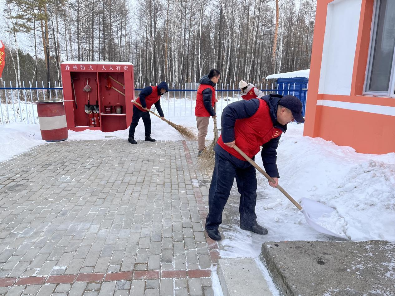 在清掃現(xiàn)場,服務(wù)隊隊長現(xiàn)場分工,志愿者們手持鐵鍬、雪推等工具,重點清理主干道與作業(yè)通道。大家配合默契,鏟雪、推雪、掃雪有序進(jìn)行。盡管天氣寒冷,但志愿者們干勁十足。經(jīng)過連續(xù)奮戰(zhàn),各管護站的主要道路、院落和通道積雪被徹底清除,出行安全得到保障。