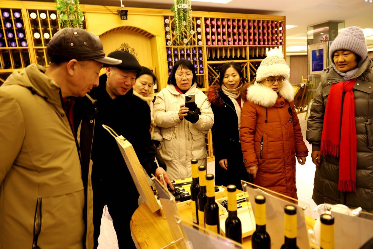 黑龍江省詩詞協(xié)會采風(fēng)團(tuán)成員在北極冰藍(lán)莓酒莊了解酒文化和酒品(王力 攝)