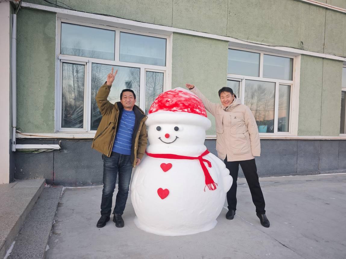 活動中,林場干部職工分工協(xié)作,有的手持鐵鍬鏟起蓬松的積雪,精準填入雪人模具,用力按壓緊實,確保雪人身軀穩(wěn)固有型;有人手持小鏟子,細細修整雪人的輪廓,讓雪人的外觀更加美觀......鮮紅的圍巾繞在雪人脖頸,在白雪的映襯下格外耀眼,彩色涂料則成了創(chuàng)意的畫筆,大家或勾勒出彎彎的微笑嘴角,或點上心形的紐扣,給雪人增添了幾分俏皮與可愛。經(jīng)過大家的共同努力,一個個憨態(tài)可掬的“白胖子”便悉數(shù)亮相,成為林場冬日里一道獨特的風景線。